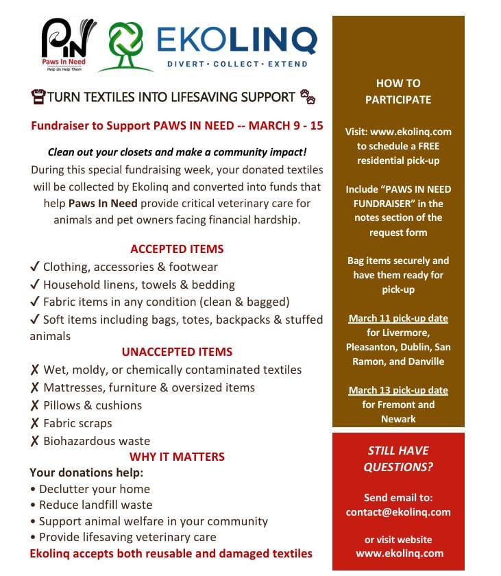 Donate Clothing, Bedding, Towels and More to Support Paws in Need!