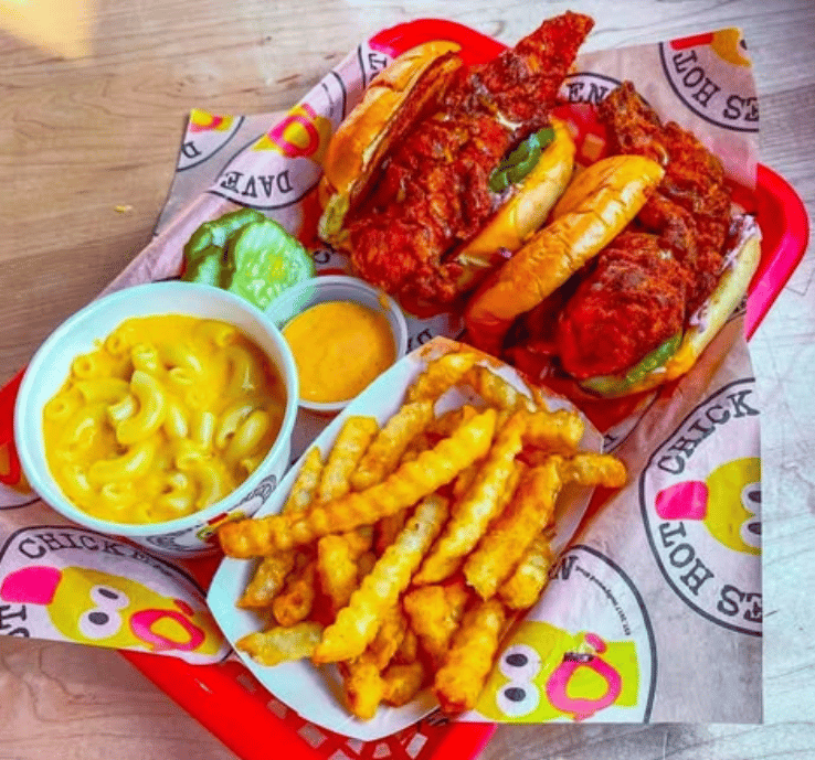 My in-laws live in San Luis Obispo, and we’ve hit up Dave’s down there a few times—it’s solid. Super simple menu: pick a sandwich or strips, choose your heat level (from “No Spice” to “Reaper”), and grab a few sides. My kids are already plotting their orders. And honestly? So am I. Instagram says they open on Friday!