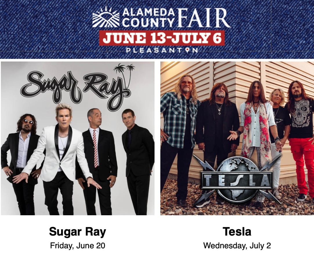 The Alameda County Fair just announced two more concerts for this coming Summer - 80’s/90’s rockers, Tesla, and 90’s pop-rock band Sugar Ray. Tickets go on sale for these two shows on February 7th. Other confirmed concerts include Clint Black, Too $hort, WAR, Twist on Taylor, and more to be announced soon! Click here for tickets and details.