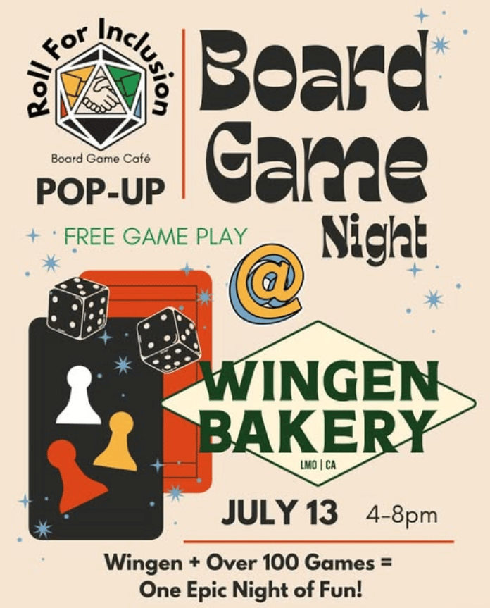 I love it when our community comes together for something fun—and this Sunday is going to be a blast! Local start-up Roll For Inclusion is teaming up with our friends at Wingen Bakery for a family-friendly Board Game Night!