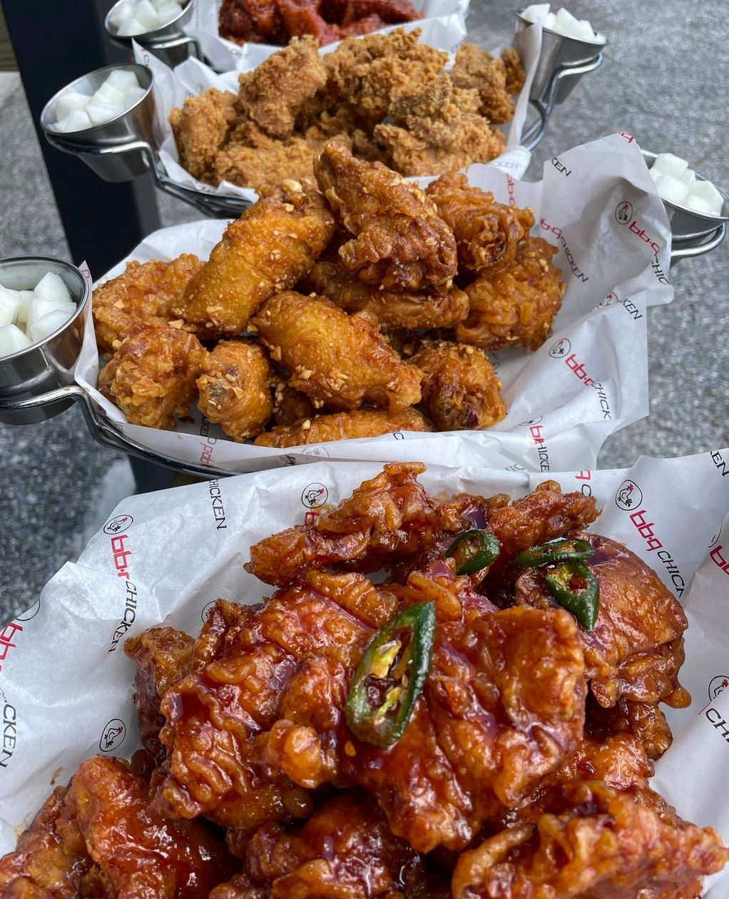 One of the fastest-growing fried chicken spots in the country (300 locations and counting!), they’re known for bold flavors like Golden Original, Honey Garlic, and spicy ddeok-bokki (Korean rice cakes).