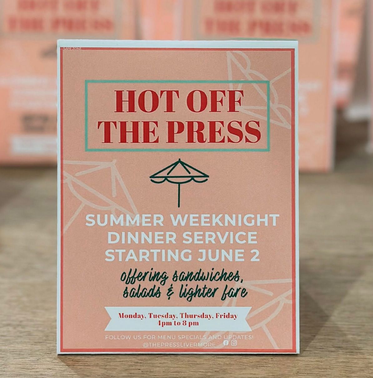 I got a great tip from a Tri-Valley Explorer reader this week—The Press Café in Livermore just launched new summer hours, and they’re now open for dinner on Mondays, Tuesdays, Thursdays, and Fridays! 🥂