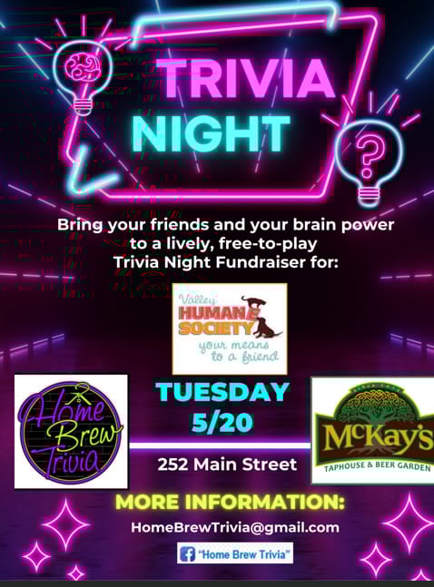 Looking for plans next Tuesday? Grab your crew and head to Trivia Night at McKay’s Taphouse in Pleasanton! It’s totally free to play, always a good time, and best of all—it helps raise money for Valley Humane Society. 🐾🍻