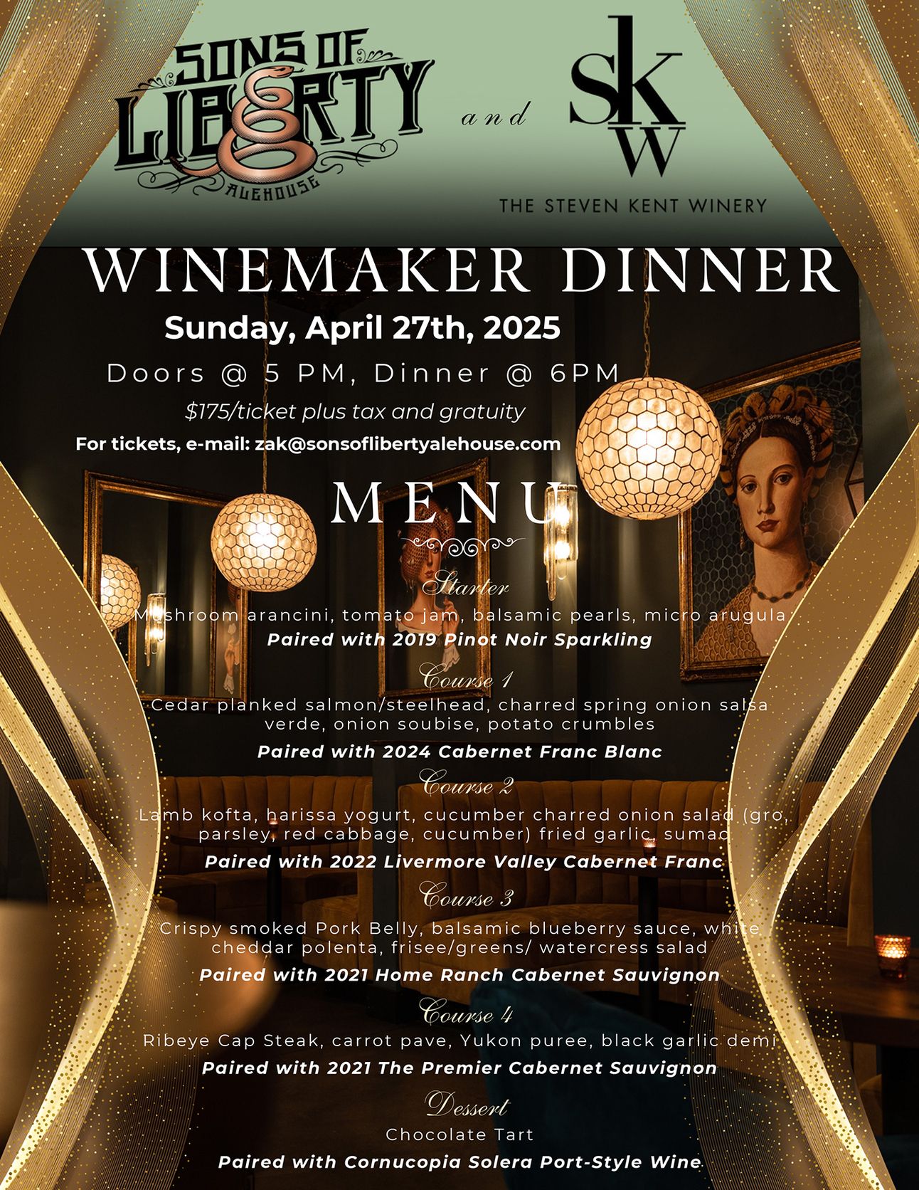 Bust out those flapper dresses! Not only does this menu and wine pairing look fabulous, there’s an added bonus! This event is at Sons of Liberty’s new Speakeasy Bar called the Honeycomb Cocktail Lounge! Want tickets? Email [email protected]!