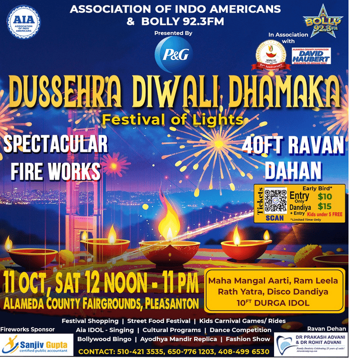 AIA Dussera Diwali Dhamaka celebrates Diwali (Festival of Lights) with a vibrant evening featuring a spectacular fireworks display and an exciting Ravan Dahan celebration. Check out vendor booths offering arts, crafts and traditional clothing from India. Enjoy delicious cuisine from across India at various food booths and experience a lively cultural program with Bollywood dances and Disco Dandiya.