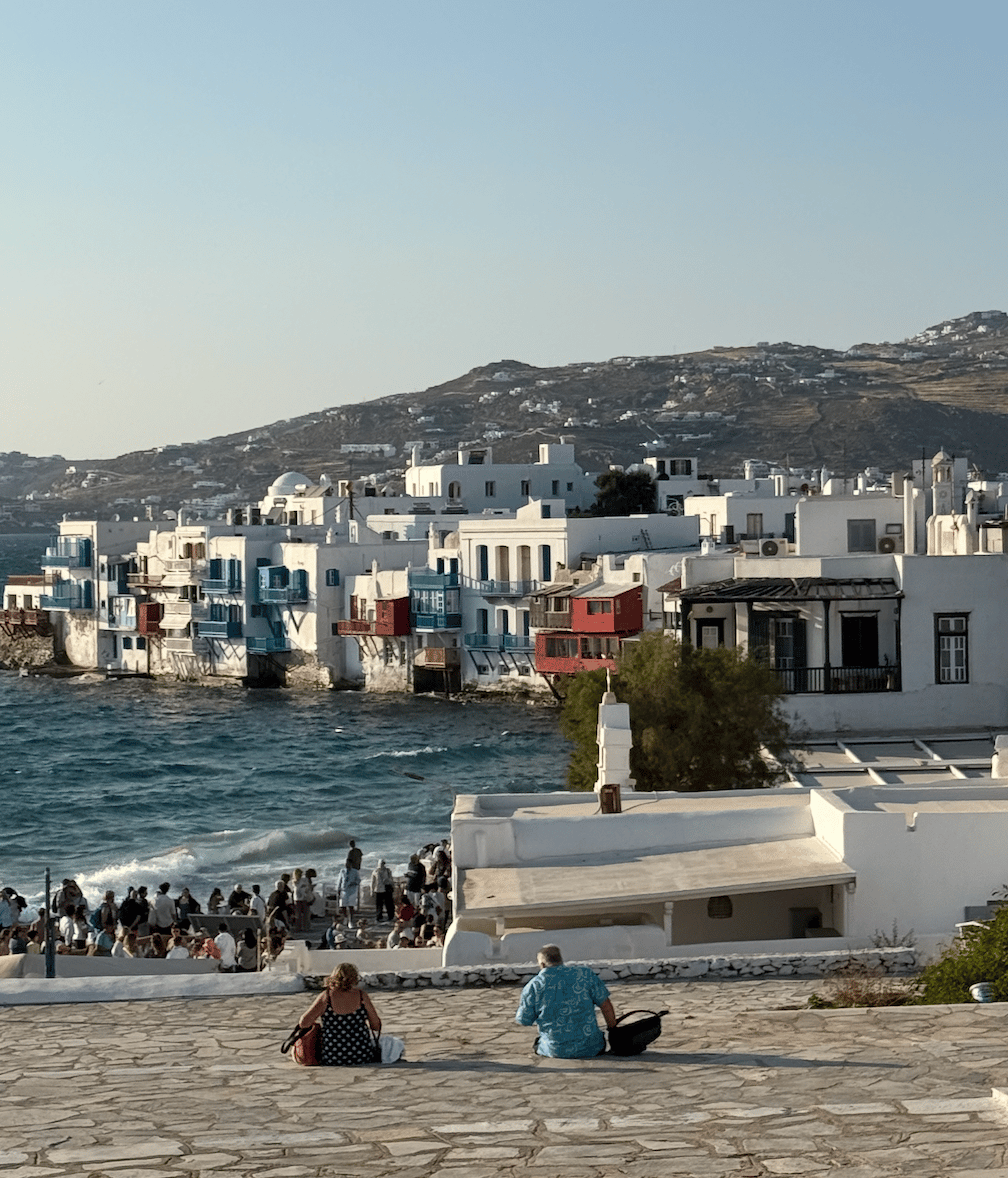 Our first official port of call was the dreamy Greek island of Mykonos. This was the only stop where we didn’t have anything pre-booked, and honestly, it was perfect that way. The kids wanted a beach day, so we hopped in a taxi and made our way to Ornos Beach—a lively little spot with calm, clear water, nearby beach clubs, and shaded lounge areas.