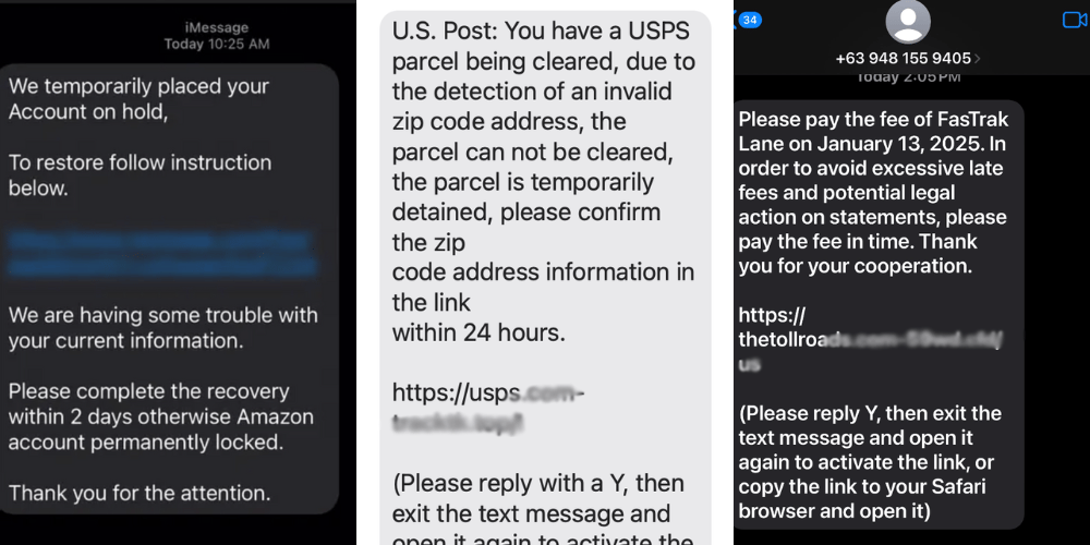 Text scams are on the rise, and even the savviest among us can fall victim. Scammers often disguise themselves as trusted entities to steal your personal information. Here are three common examples making the rounds: