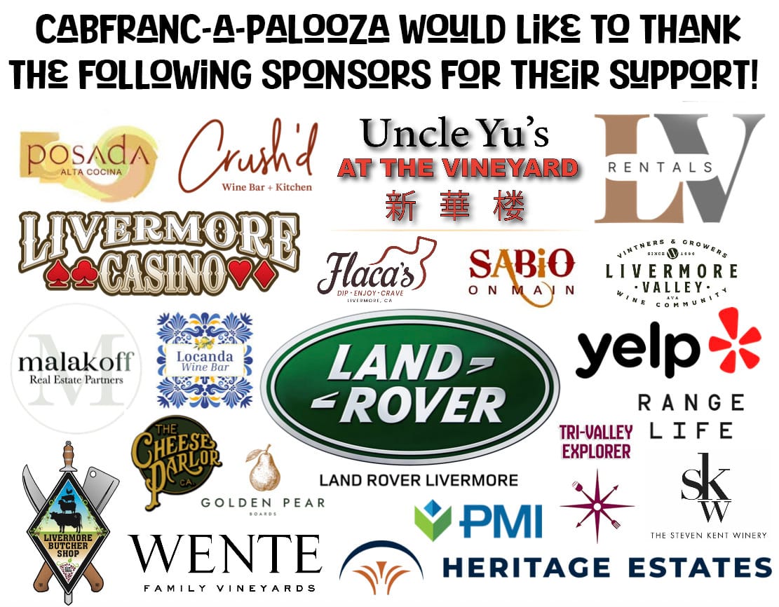 The CabFranc-A-Palooza team would like to give a big thank you to all of the incredible sponsors above—including yours truly, Tri-Valley Explorer! 💛🍷