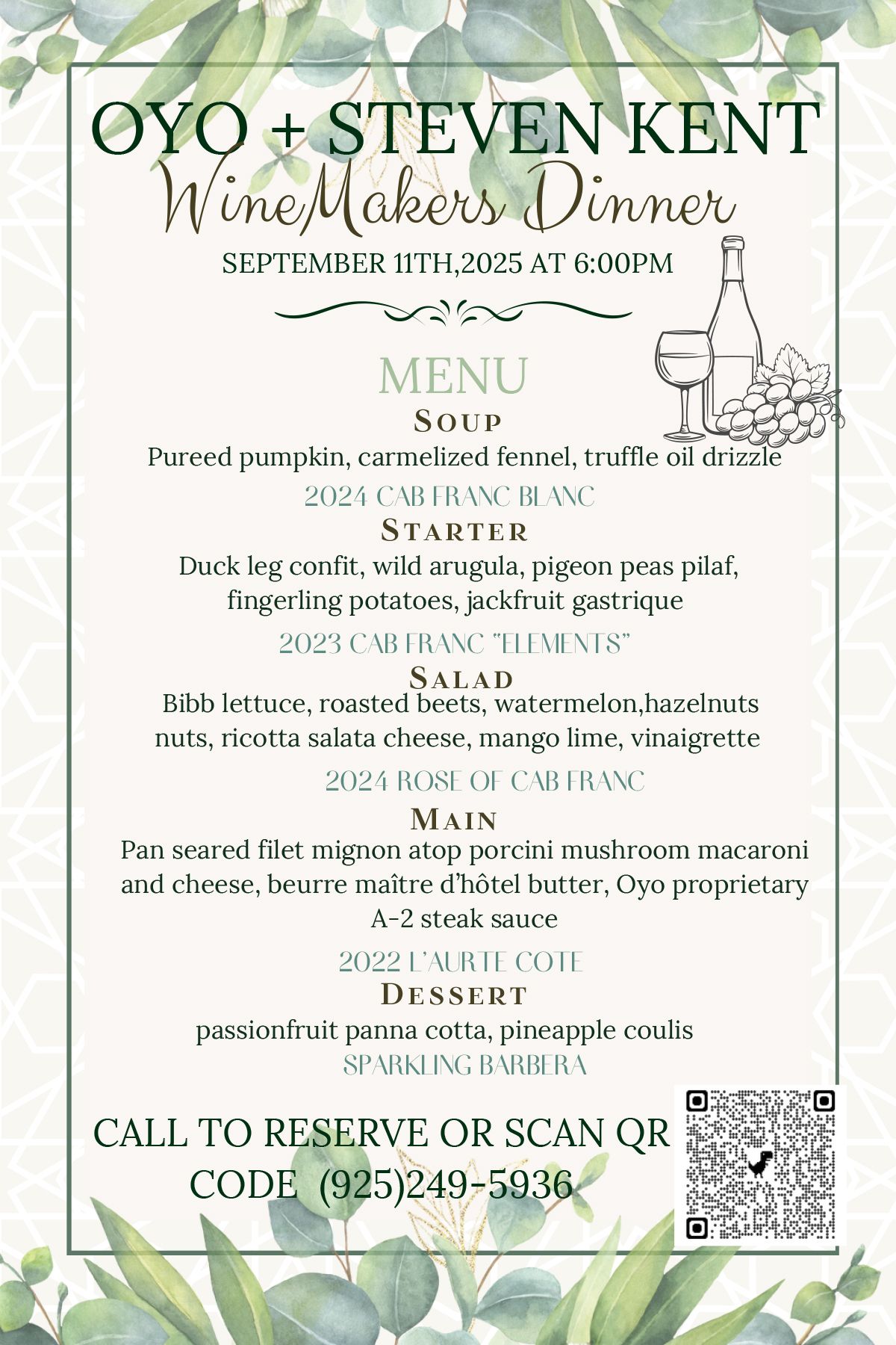 Winemaker Dinner at Oyo in Pleasanton on Sept. 11th!